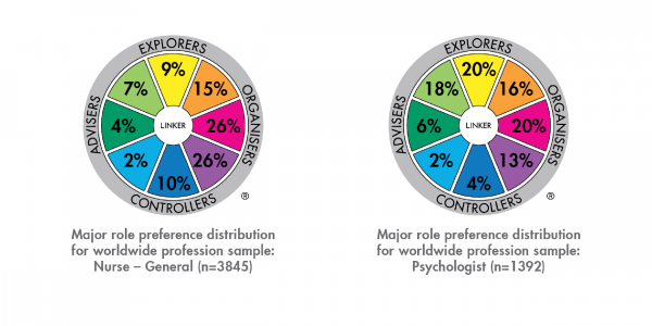You can use our new normative data to design activities to help develop expert Linkers. Say for example you were developing a program for a team of Nurses in a hospital who needed to improve the way they link with a team of Psychologists. You can start off by presenting both normative data sets side by side. You can use the following questions to help the group move from observing the data to interacting with the data to using the data to drive their motivation to work on Linking skills.
