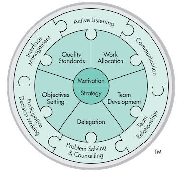The Linking Leader Profile (LLP|360) describes 13 critical skills that need to be mastered to become a supportive leader with both transactional and transformational skills. Mastery of all 13 skills is seen in leaders able to transform a workplace from a collection of groups working together, into motivated and inspired teams with a shared vision. These skills are divided into three sub-groups: Task Linking, People Linking and Leadership Linking skills (represented by the three concentric circles in the Linking Leader Model below).